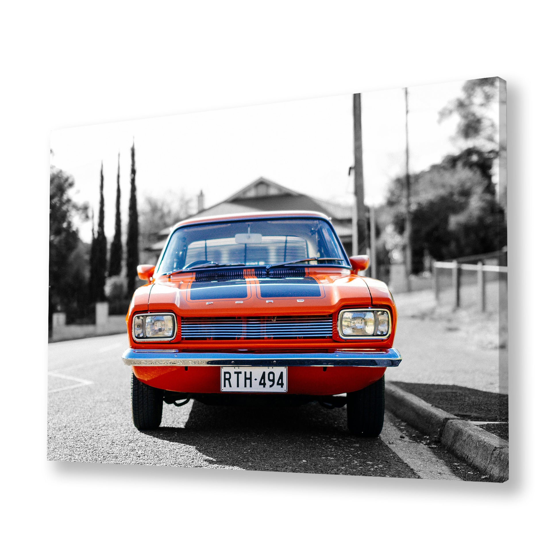 1970s MK1 Ford Capri - Vista Orange Black Stripes Canvas Art