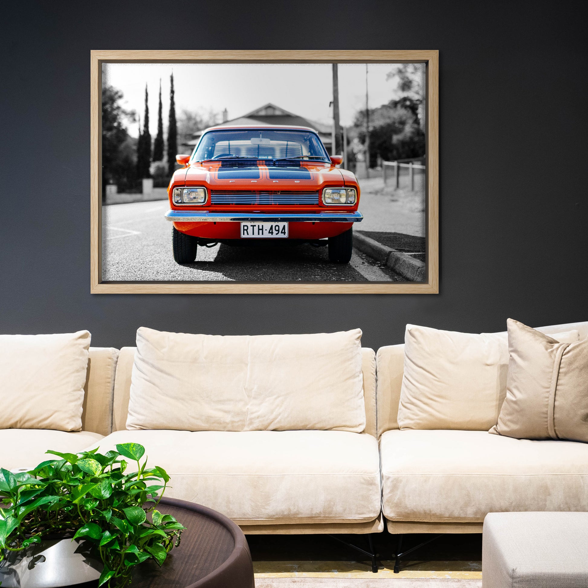 Buckle up, petrolhead! This stunning Canvas Art Print celebrates the legendary 1970s Ford Capri in its most iconic Vista Orange finish, complete with those signature black racing stripes. A timeless beauty that defined a generation of motoring, now immortalised as wall art for your garage, man cave, or living room. Perfect for anyone who dreams in horsepower and nostalgia. Rev your décor with automotive heritage.