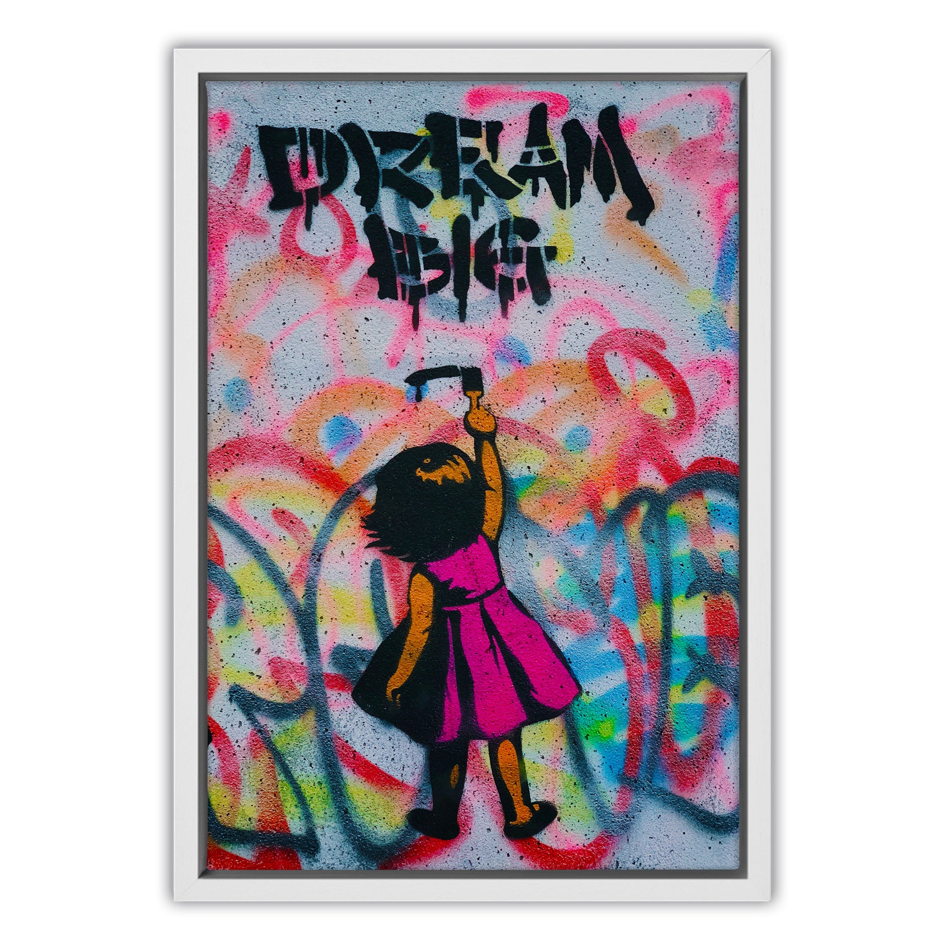 Bring street art energy to your secret hideaway with this playful canvas featuring a graffiti-style "Dream Big Girl" quote. Perfect for adding personality to bedrooms or cosy corners, this piece merges edgy lettering with girlie charm. It's the kind of wall art that makes you smile every time you catch it—a fun reminder to embrace your ambitions and keep dreaming without apology. Ideal for creating a space that's uniquely, unapologetically you.