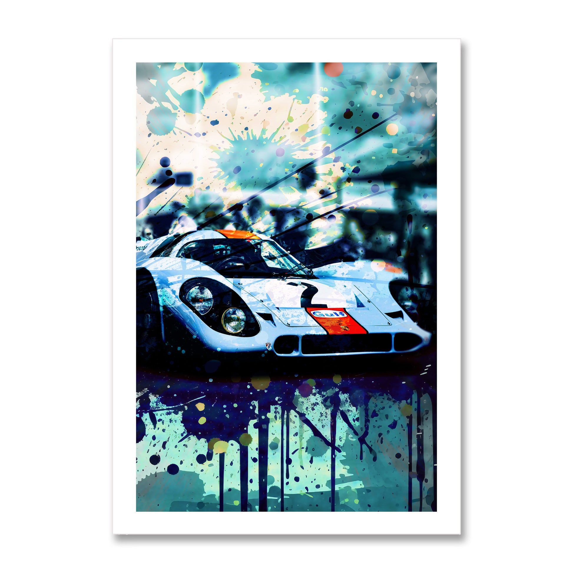 This bold graffiti-style Poster Print brings the legendary Porsche 917K to life with street art flair. Splashed across your wall in vibrant colours and dynamic brushstrokes, this 1970 Daytona-winning Gulf Edition machine becomes pure visual rebellion. Perfect for race fanatics who want their passion displayed with attitude, this print merges high-octane motorsport heritage with contemporary urban art. Transform any space into a garage gallery that screams speed, style, and pure petrolhead pride.