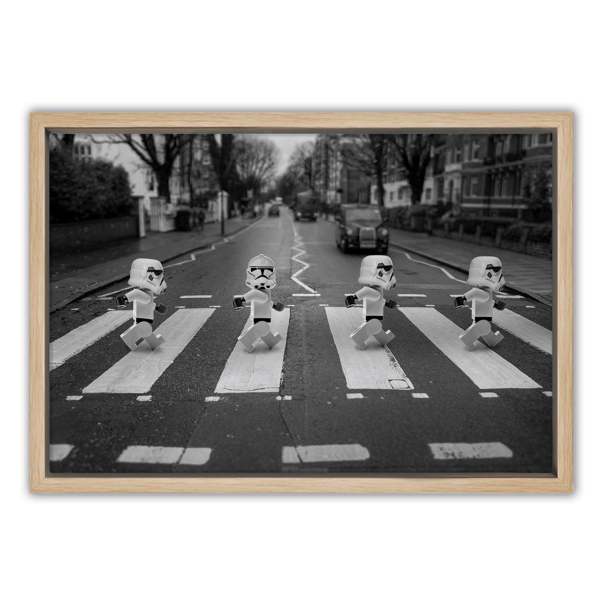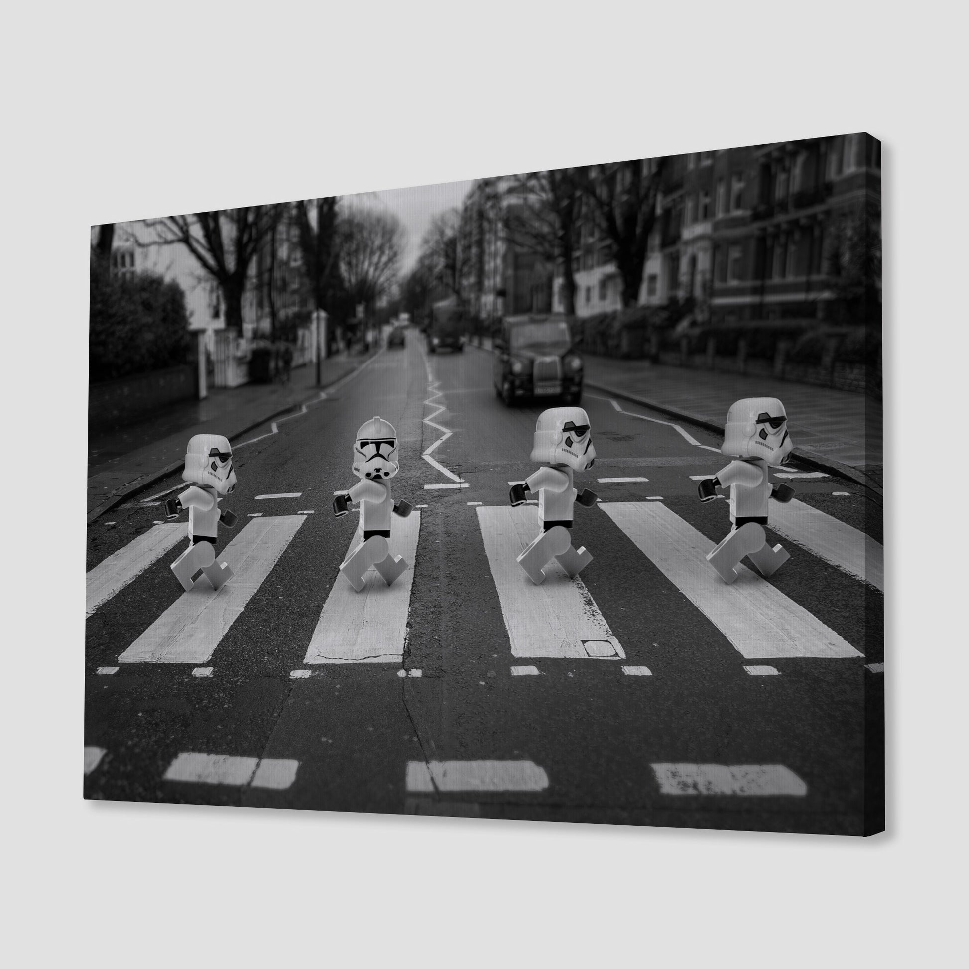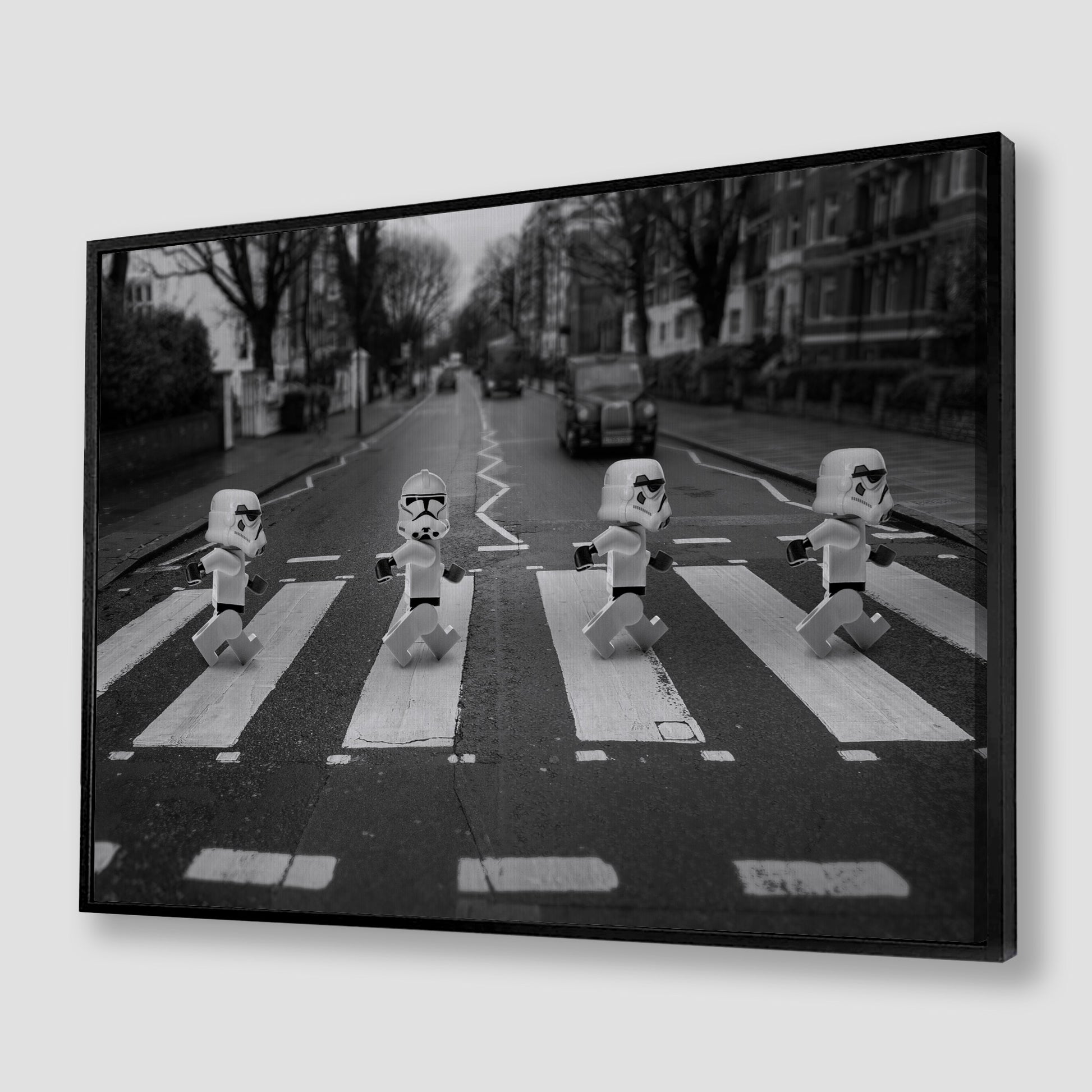 Bring a playful fusion of pop culture to your walls with this Stormtroopers Abbey Road Canvas Art. Perfect for Star Wars and The Beatles fans alike, it adds a quirky twist to any room, combining iconic music history with a galactic flair. Let these marching stormtroopers bring charm and character to your home decor, sparking conversation and smiles from every visitor.