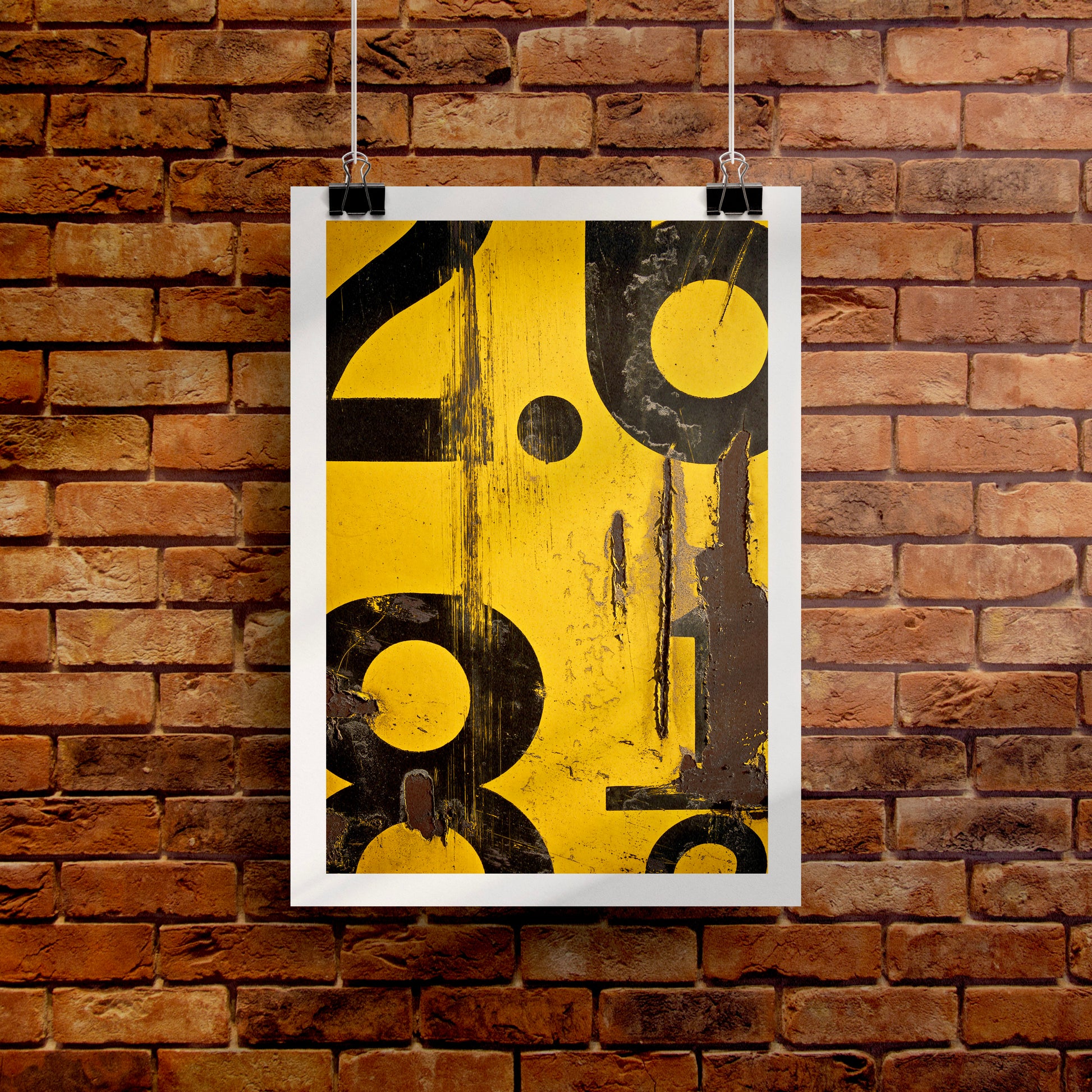 Embrace the gritty charm of urban aesthetics with this striking Poster Print. Featuring abstract numerals in shades of yellow, rendered with intentional wear and weathering, it captures that coveted industrial edge. Perfect for lofts, studios, or any space craving character, this piece celebrates the beauty of decay and the stories told through distressed typography. A conversation starter that transforms blank walls into galleries of raw, contemporary style.